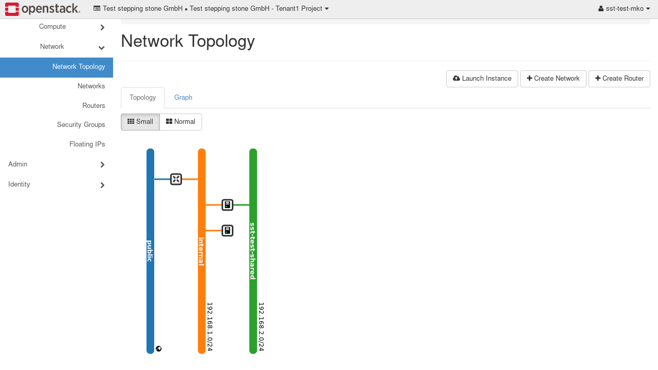 Within the OpenStack-based stoney cloud, you create the network topology according to your individual requirements. The private virtual networks are set up via software defined networking (SDN).