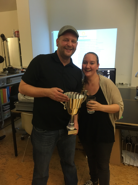 Organised from the companies Giessform Atelier für Kommunikationsdesign GmbH and stepping stone GmbH, the first business to business table football was a success. With over 30 participants form 15 different companies the games started at 18.00 h. After the first shy rounds in the coincident drawn teams, the play added in speed and after 7 enthusiastic rounds, the knockout round was played with the 16 best players. After a very exiting and concentrated final game the winners got their trophies.
